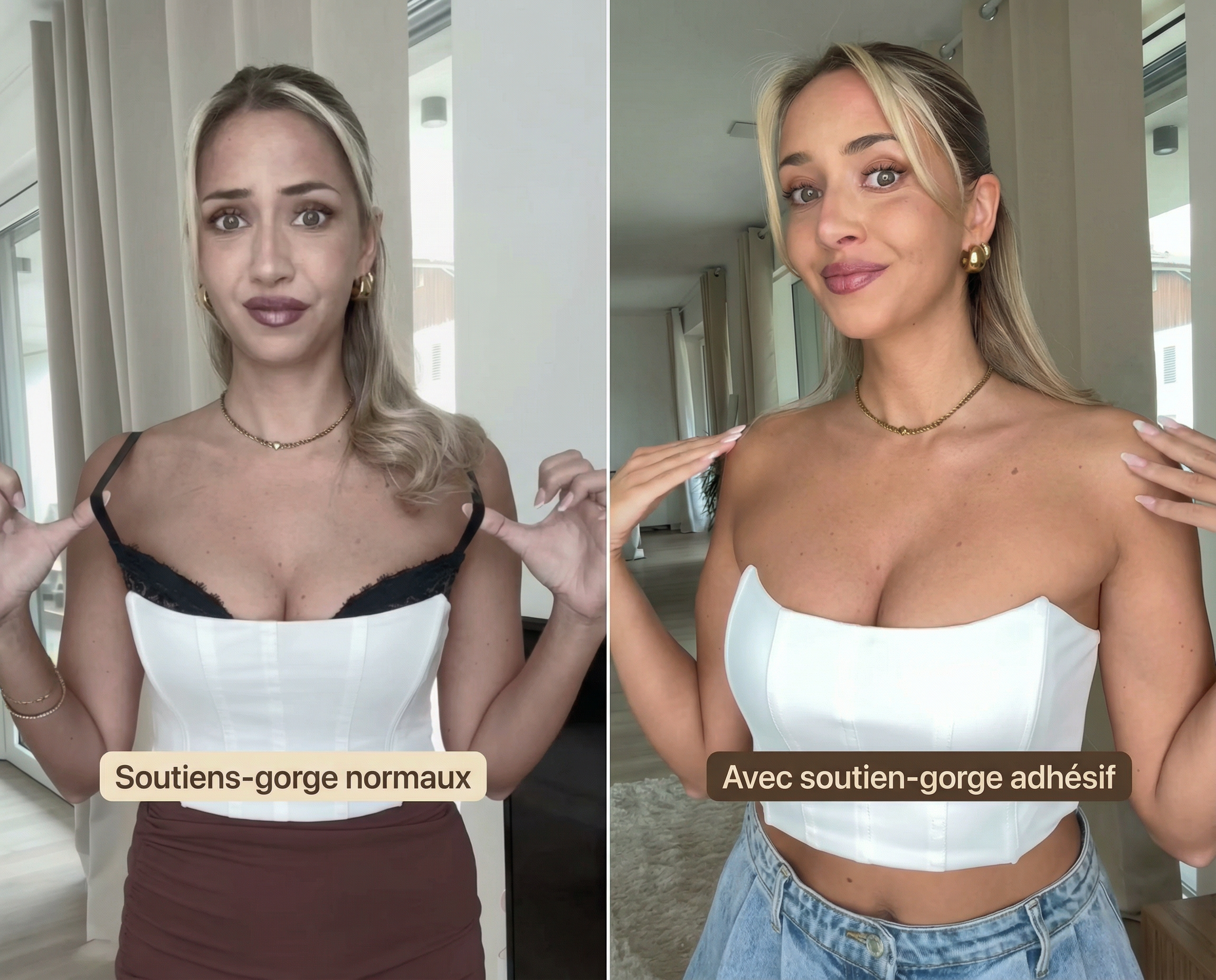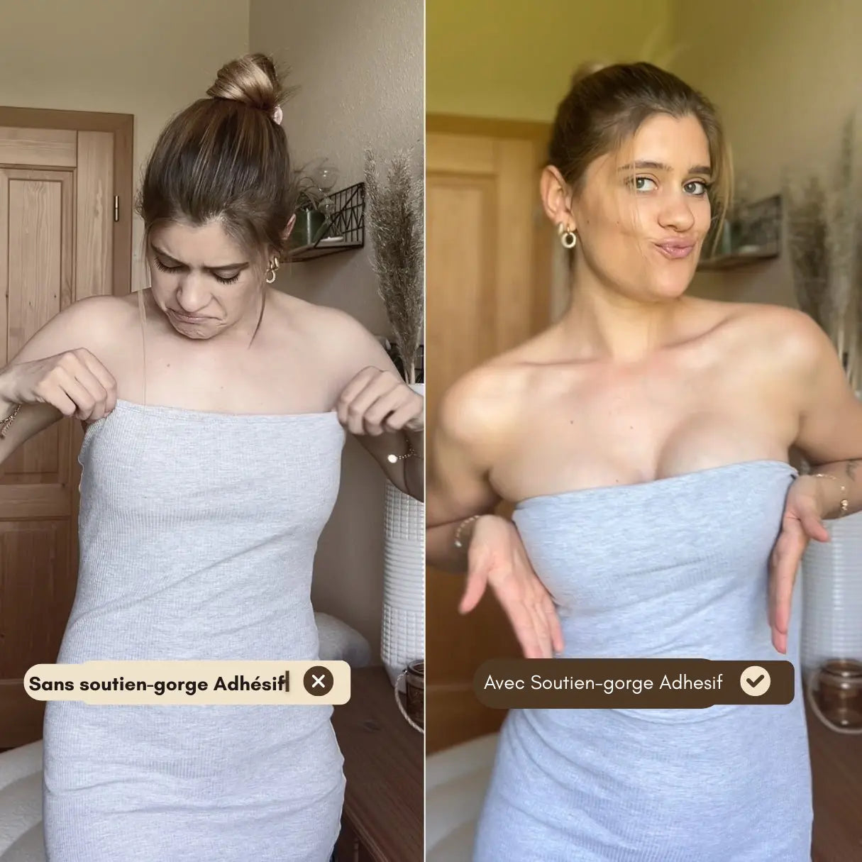 Sans vs. avec soutien-gorge adhésif